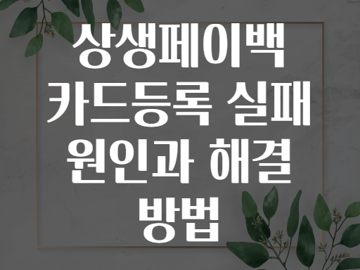 안녕하세요! 오늘은 많은 분들이 사용 중인 상생페이백(상생페이백) 프로그램에서 카드 등록에 실패하는 경우가 많아지면서, 그 원인과 완벽한 해결 방법을 함께 알아보려고 합니다. 🤔💡
