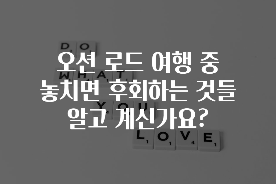 여행을 계획하면서 오션 로드(Ocean Road)의 아름다움에 마음을 빼앗긴 분들 많으시죠? 그런데 한 가지 잊지 말아야 할 사실은, 이 멋진 길을 따라 가다 보면 놓치기 쉬운 소중한 경험들이 너무 많다는 거예요! 😲 지금부터 오션 로드 여행 중 놓치면 후회할 것들을 소개할게요. 자, 그럼 함께 떠나볼까요? 🚗💨