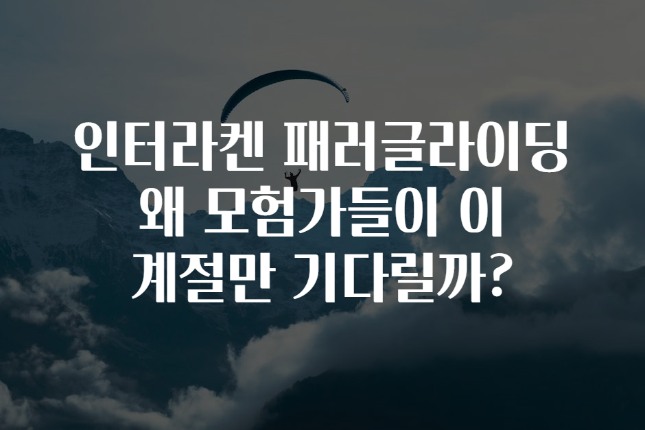 여행과 모험을 사랑하는 이들에게 ‘패러글라이딩’은 꿈의 스포츠 중 하나입니다. 🌈 특히, 스위스 인터라켄 지역은 그 아름다운 풍경과 좋은 기후로 전 세계 패러글라이더들이 자주 찾는 명소입니다. 하지만 왜 많은 모험가들이 이 계절을 특히 기다리는 걸까요? 그 이유를 알아보고, 안전하고 즐거운 패러글라이딩을 위한 팁을 함께 살펴보겠습니다! 🏔️✨