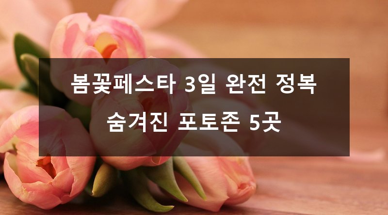 안녕하세요, 여러분! 🤗 따뜻한 봄바람과 함께 찾아오는 '봄꽃페스타'는 매년 수많은 꽃구경객들의 마음을 설레게 하는 대한민국 대표 축제 중 하나죠. 혹시 올해는 어디서 사진 찍을까 고민 중이신가요? 🤔 봄꽃페스타에서 누구나 아는 메인 포토존 말고, 조금 더 특별하고 감성 가득한 숨겨진 포토존을 탐방해보는 건 어떨까요? 오늘은 ‘봄꽃페스타 3일 완전 정복’을 목표로, 꼭 가봐야 할 숨겨진 포토존 5곳을 소개해 드릴게요! 🌷📅